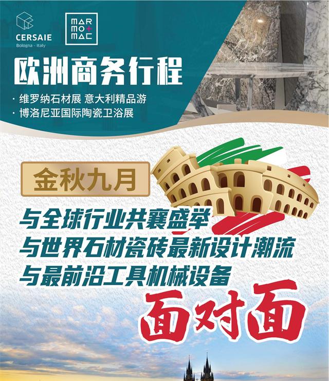 觀展商務(wù)行程報名即將截止,多種方案,供君挑選,更多詳情請聯(lián)系我們!帶您深度了解世界級石材盛會,挖掘全球客戶的絕佳機(jī)會!