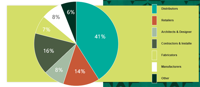 Coverings每年都吸引了大量來自全球各地的專業(yè)觀眾,他們主要是石材、瓷磚和馬賽克材料行業(yè)的專業(yè)人士,其中分銷商占總數的41%,零售商占14%,建筑師與設計師占8%,承包商與安裝商占16%,工具、機械制造商占15%,其他行業(yè)的觀展人員占6%。這說明Coverings的觀眾構成具有廣泛性和多樣性,這為參展商提供了與全球行業(yè)精英交流、合作和拓展業(yè)務的寶貴機會。