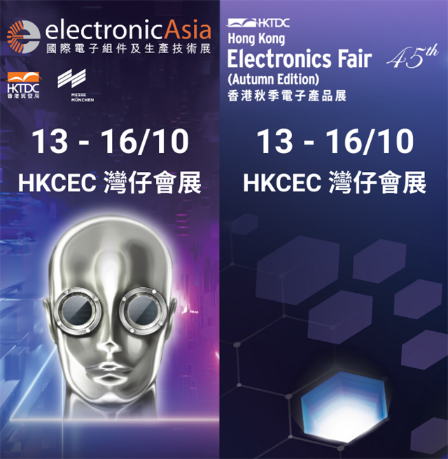 2025年10月13-16日,由香港貿易發展局(香港貿發局)主辦的香港秋季電子產品展(秋電展,Electronics Fair)和國際電子組件及生產技術展(electronicAsia)將于于香港會議展覽中心(香港會展)舉辦,歡迎參展!