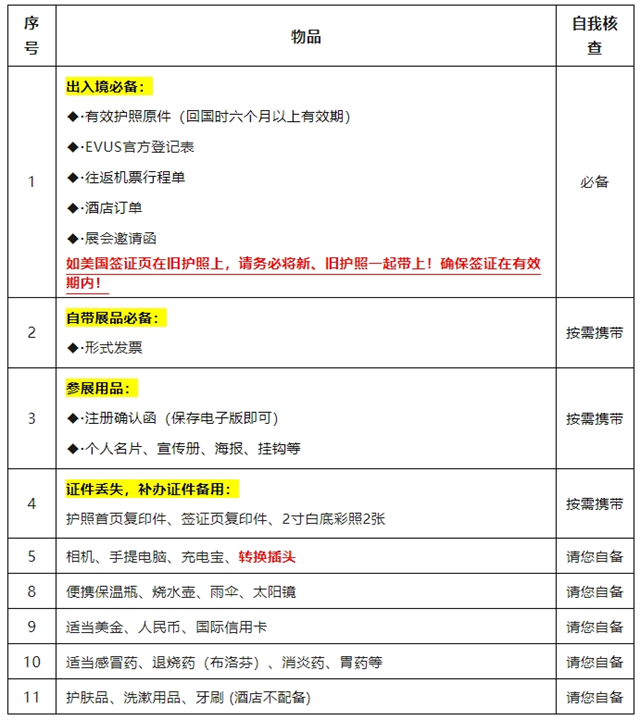 差旅注意事項: